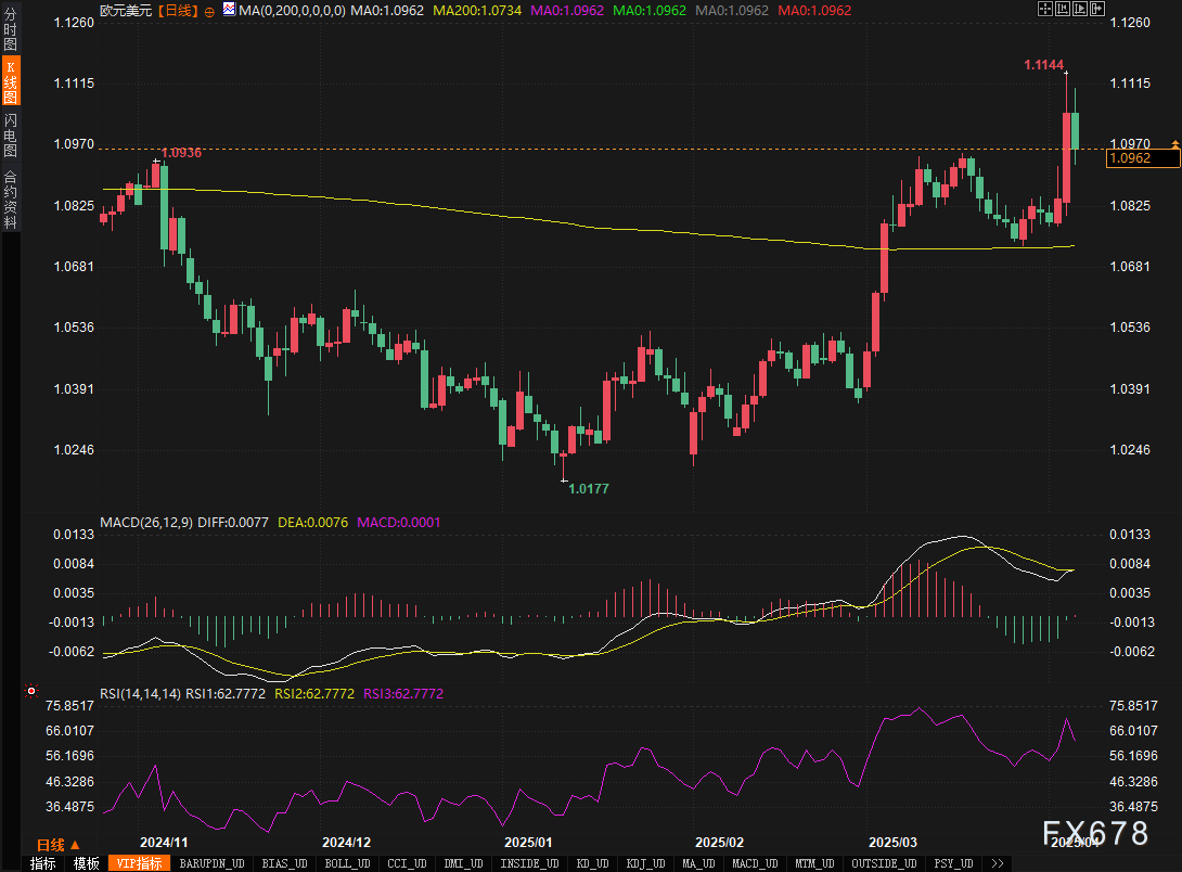2. 经济数据分化。欧元区3月CPI同比升至2.9%(前值2.6%),而美国核心PCE回落至2.8%,货币政策差异支撑欧元。