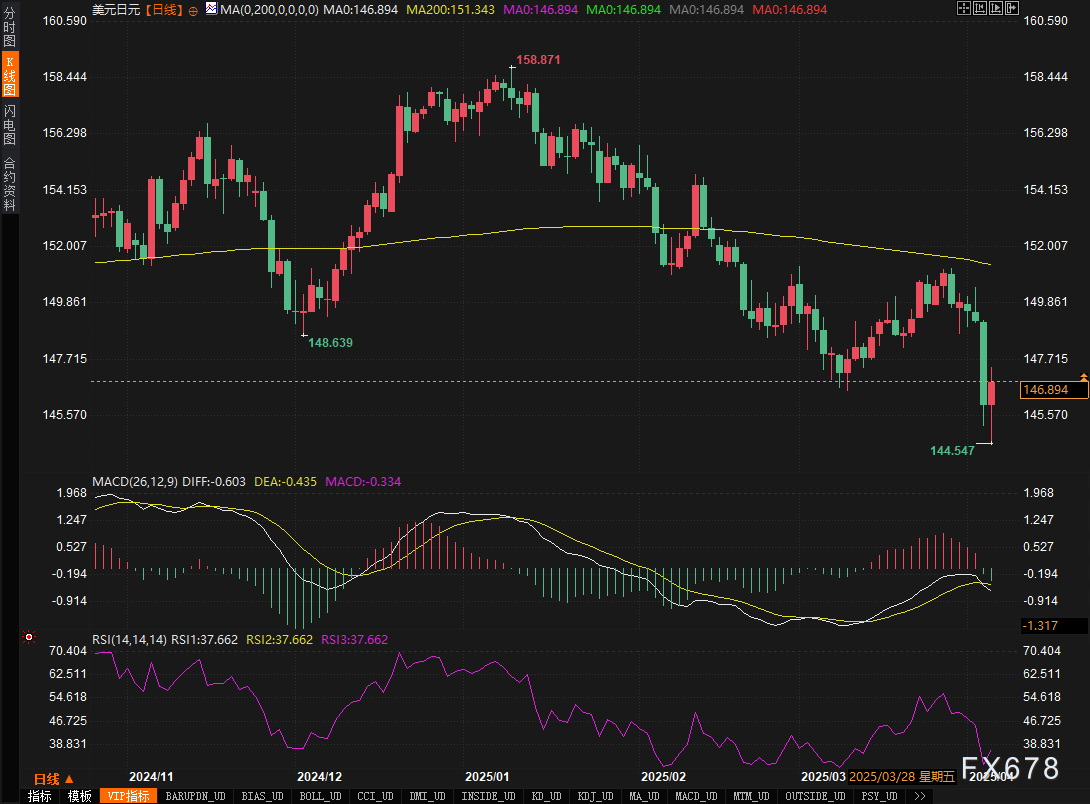 美元/日元周五反弹0.59%至146.03,但周线月初以来最大跌幅。周四汇价一度触及145.19的七个月低点。